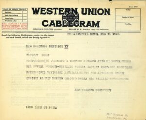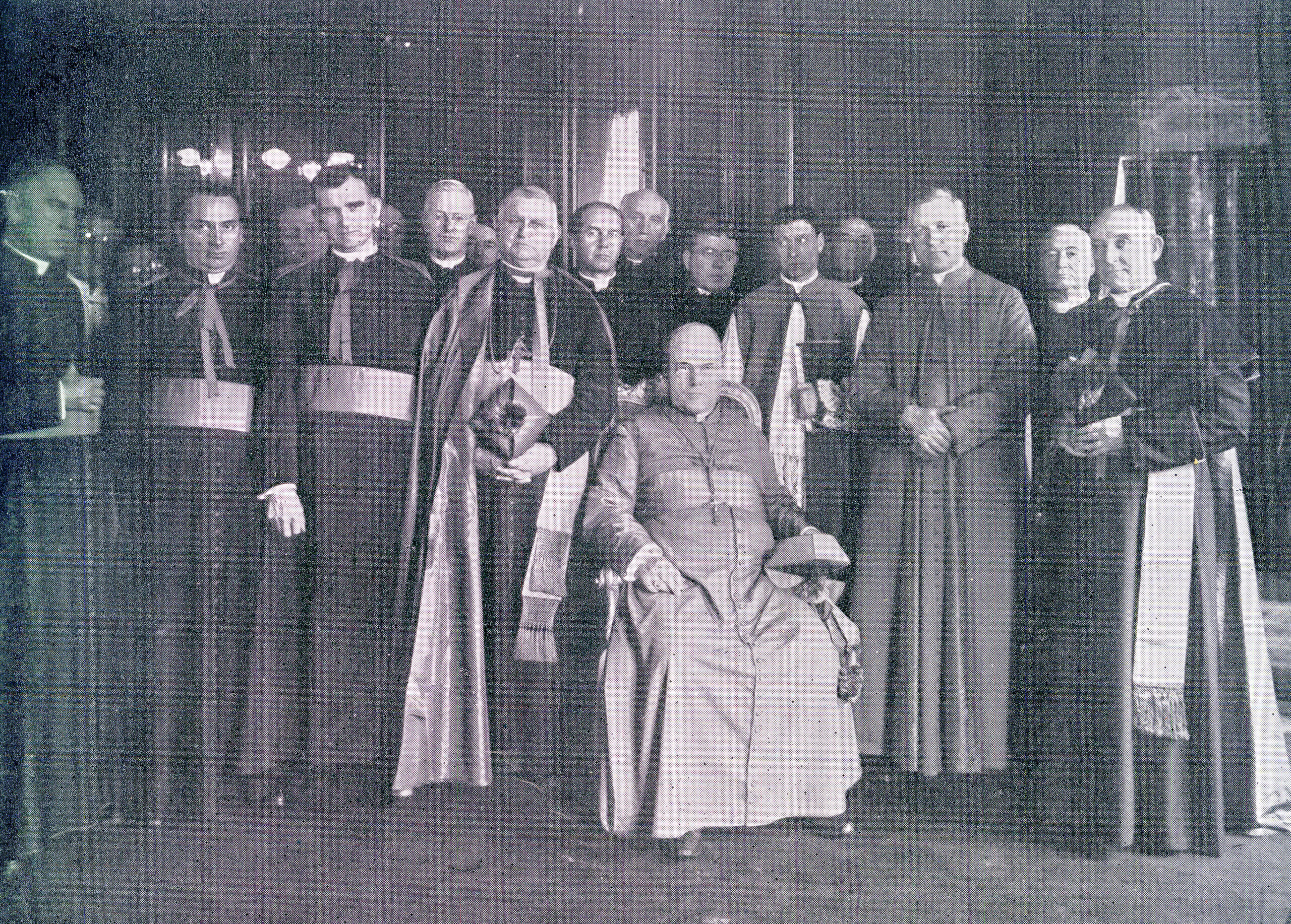 While presiding over Canon Law examinations at Saint Charles Borromeo Seminary on February 11, 1921, Archbishop Dougherty received word that Pope Benedict XV had elevated him to the rank of Cardinal. This would make Dougherty the first Cardinal for the Archdiocese of Philadelphia, the fifth American resident Cardinal, and the fourth American-born to be elected to the College of Cardinals. In a response to His Holiness the same day (shown on the left), Archbishop Dougherty wrote: "Profoundly moved and deeply touched, I offer you my heartfelt thanks for the gracious blessing bestowed on me. I pray for your health and for the continued flourishing of the Holy See. I remain, with the utmost devotion.” Once the news was announced, a “grand and chorus of joy and gratification swelled up in the hearts of the faithful.” The following week on February 19th, Cardinal-elect Dougherty and members of the clergy made their way by train to Hoboken, New Jersey, where they boarded the Nieuw Amsterdam for Europe. According to a report by the Catholic News Service: