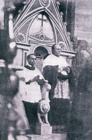 Cardinal Dougherty at the throne of his Titular Church of Saints Nereus and Achilleus, Rome, Palm Sunday, March 20, 1921