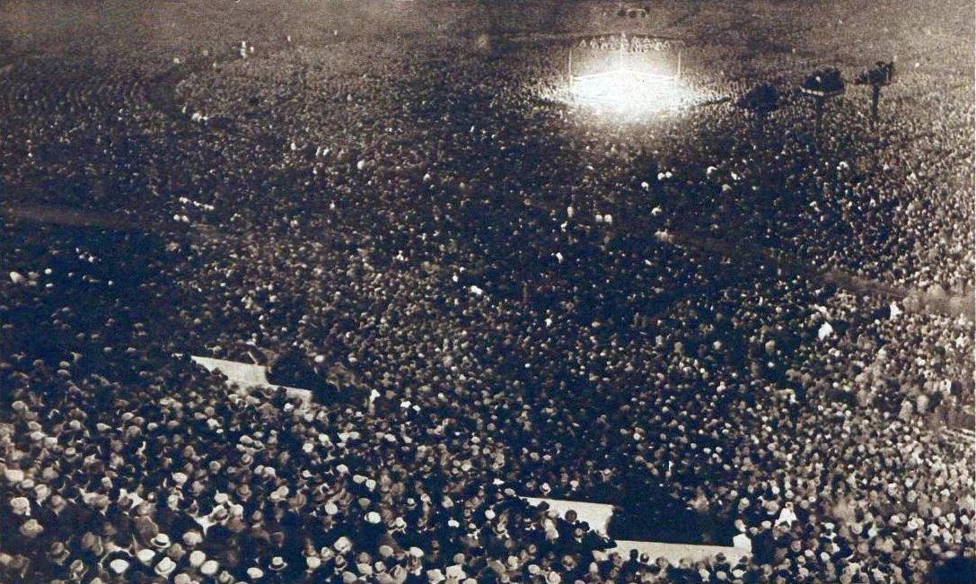Some of the 140,000 spectators at the Sesquicentennial Stadium, Philadelphia, Pennsylvania on 23 September 1926 for the Jack Dempsey vs. Gene Tunney match.